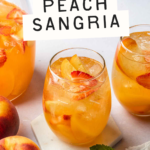 This white peach sangria is made with crisp white wine, apricot brandy and sweet, juicy peach nectar. It’s loaded with fresh sliced peaches and strawberries then topped with bubbly ginger beer for a refreshing, summer sangria.